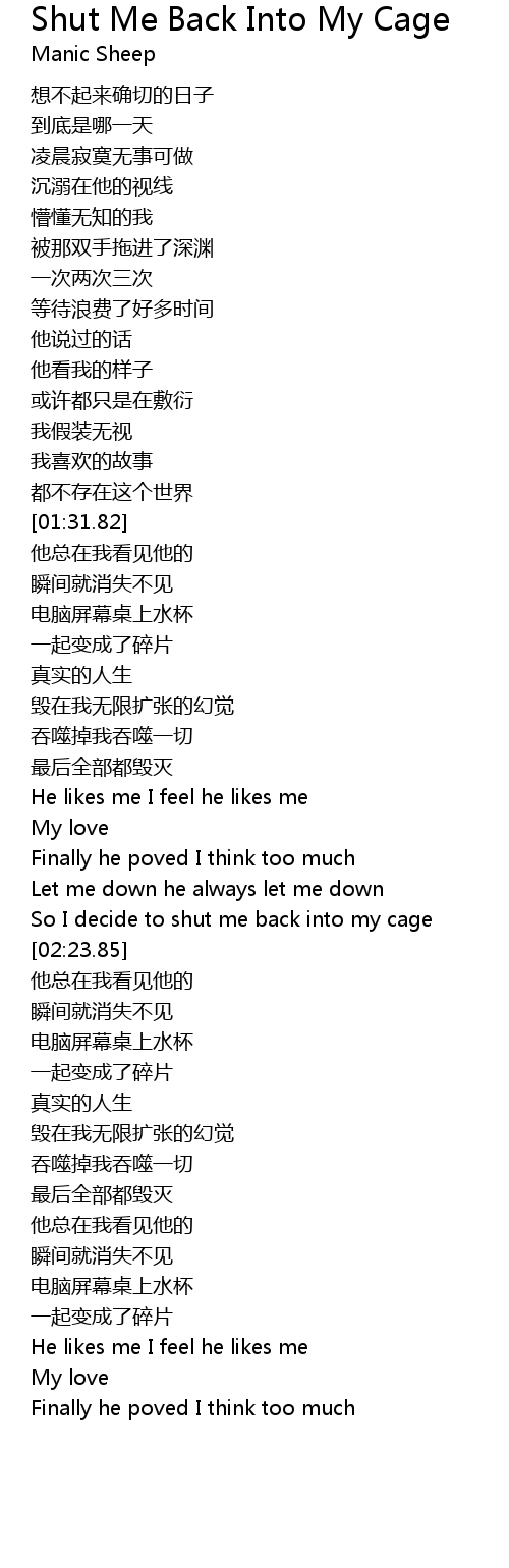 | 歌曲 | Shut Me Back Into My Cage |
