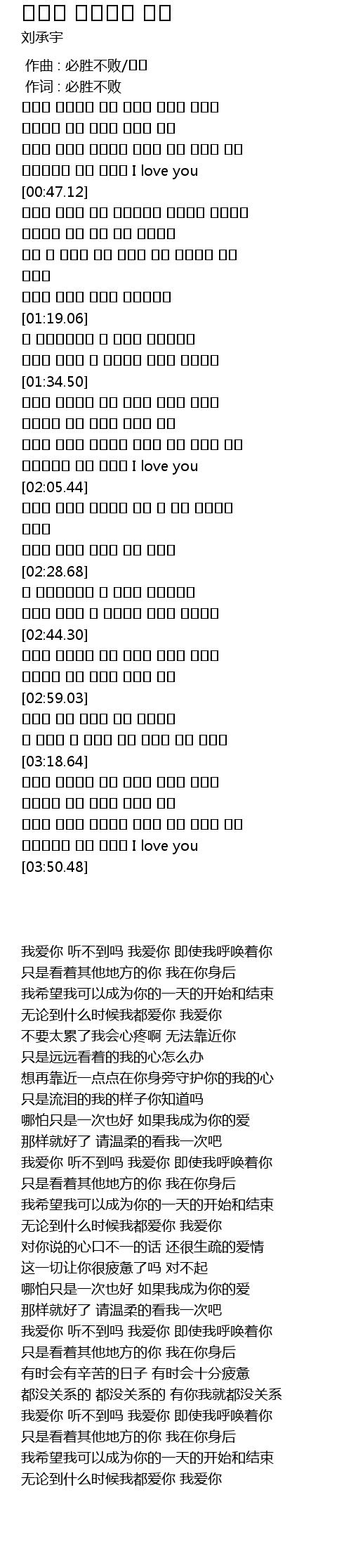 | [03:42.66] | 无论到什么时候我都爱你 我爱你 |