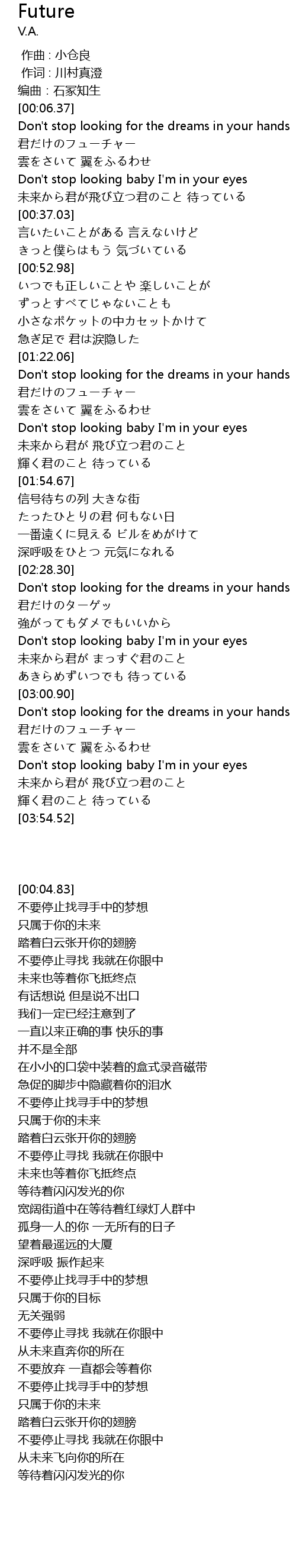 | [03:22.08] | 不要停止找寻手中的梦想 |