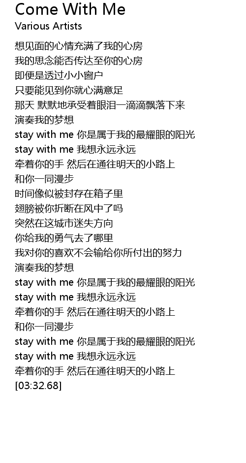 | [03:03.58] | stay with me nǐ shì shǔ yú wǒ de zuì yào yǎn de yáng guāng |
