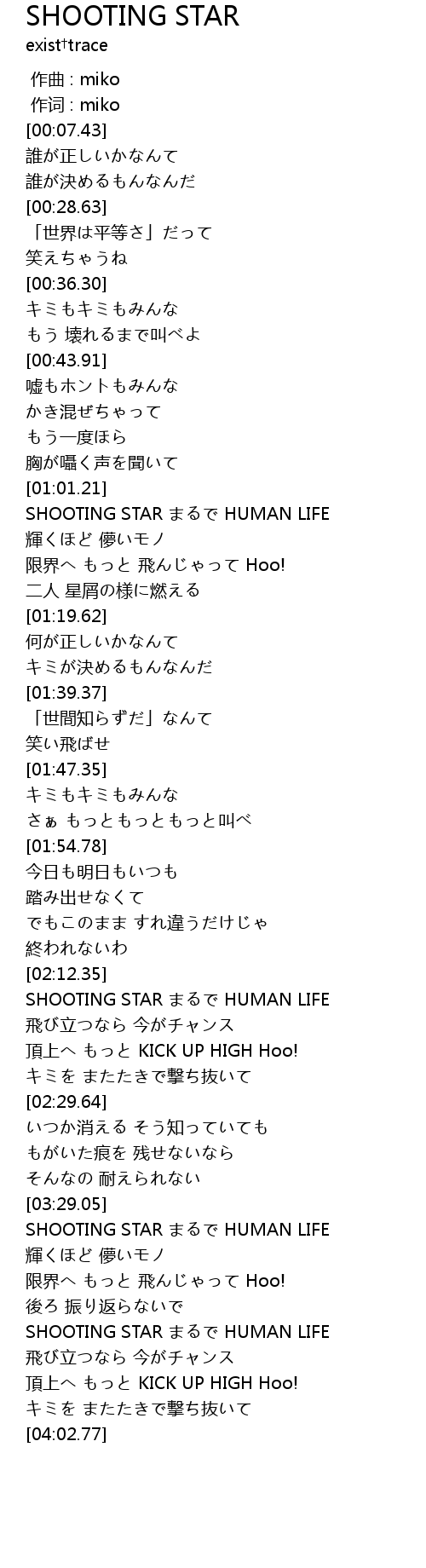 | [03:29.43] | SHOOTING STAR HUMAN LIFE |