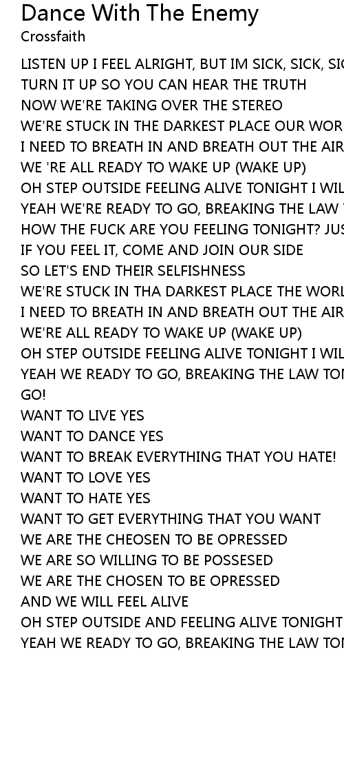 YEAH WE'RE READY TO GO, BREAKING THE LAW TONIGHT I WILL DANCE WITH ENEMY |
