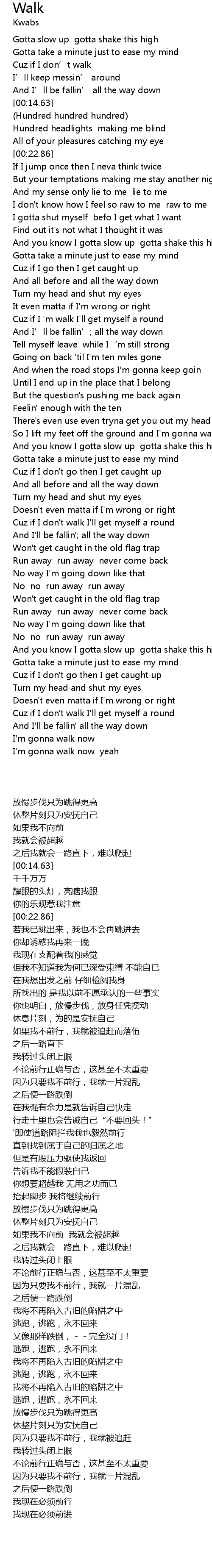 | [00:08.45] | Cuz if I don’t walk |