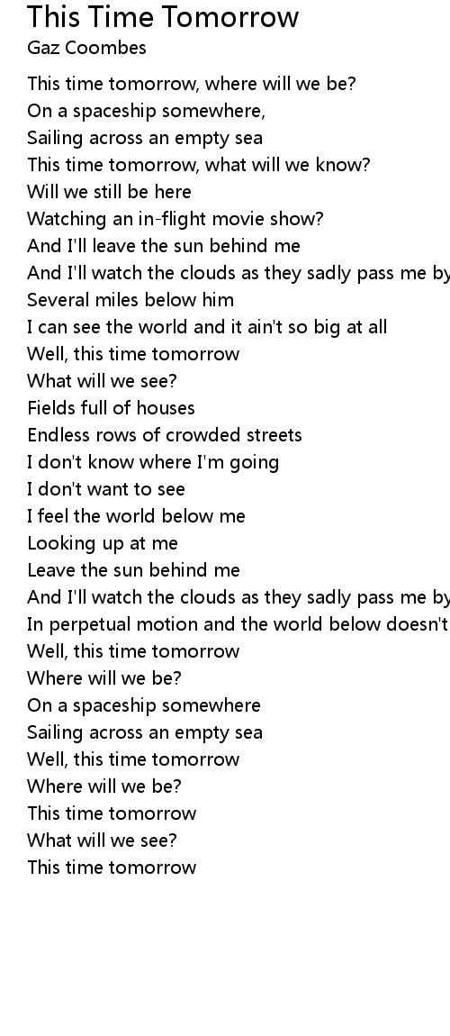 Well, this time tomorrow |
