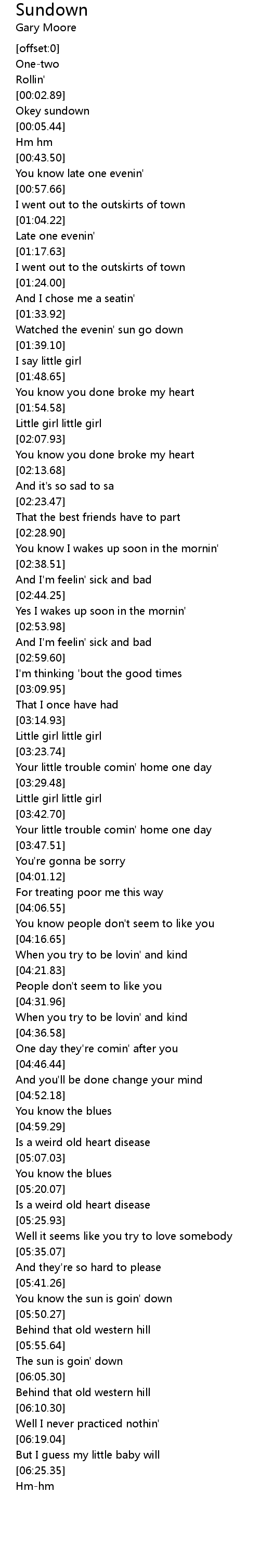 [05:46.87] You know the sun is goin' down