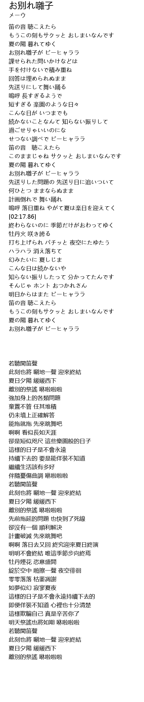 | [00:22.94] | 離別的祭謠 咻啦啦啦 |