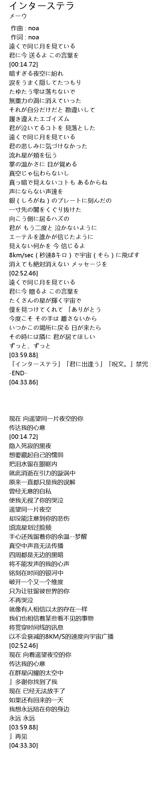 | [04:06.96] | 「インターステラ」「君に出逢う」「呪文。」禁咒:「インターステラ |
