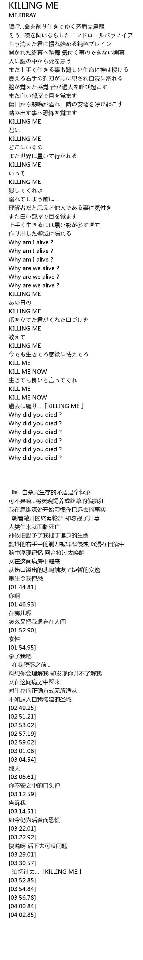 | [03:32.68] | 追忆过去...「KILLING ME.」 |
