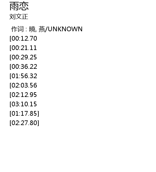 | [02:53.69][02:03.56][00:53.10] | 我愿做小雨 永远陪着你 |
