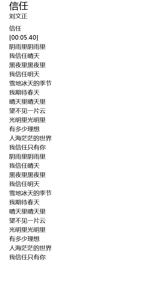 | [00:15.17] | wǒ xìn rèn qíng tiān |