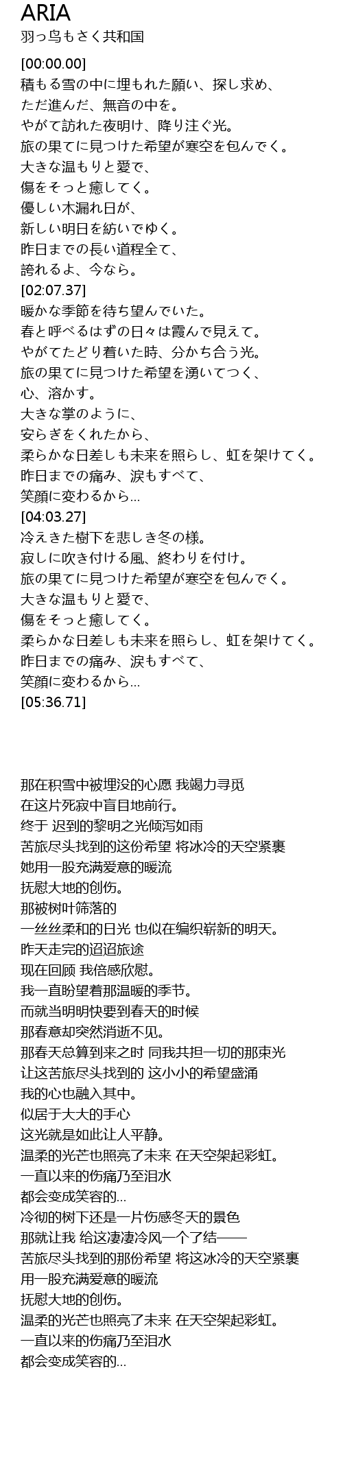 | [00:43.93] | ただ進んだ、無音の中を。 |