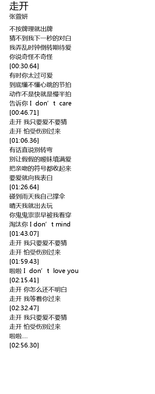 | [02:33.70] | 走开 我只要爱不要猜 |