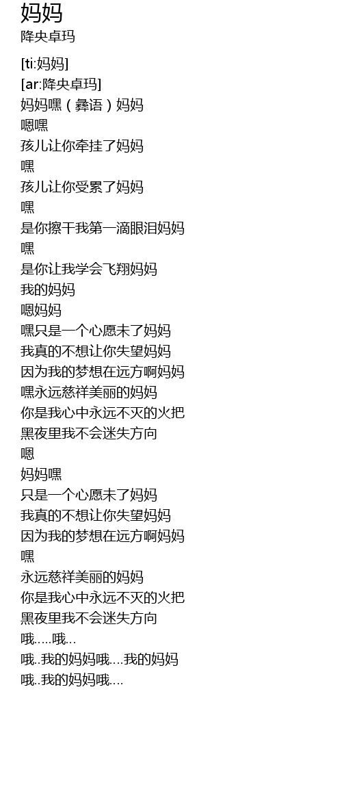 | [00:28.728] | 妈妈嘿(彝语)妈妈 |