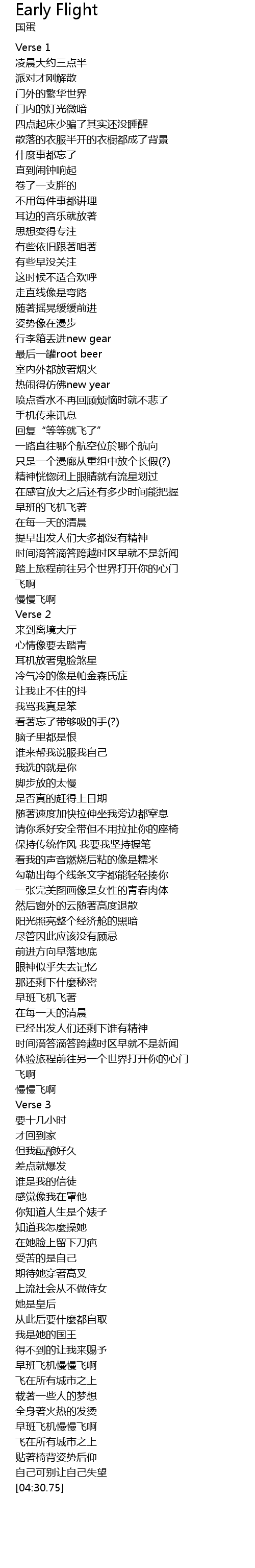 | [02:48.02] | zǎo bān fēi jī fēi zhe |