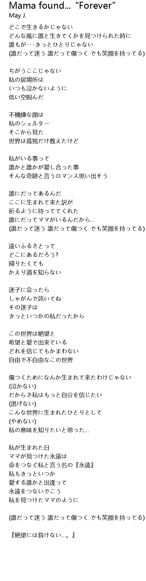 | 歌曲 | Mama found...“Forever” |