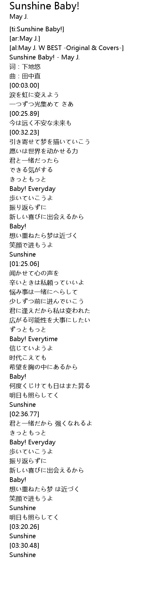 | [00:00.27] | Sunshine Baby! May J. |