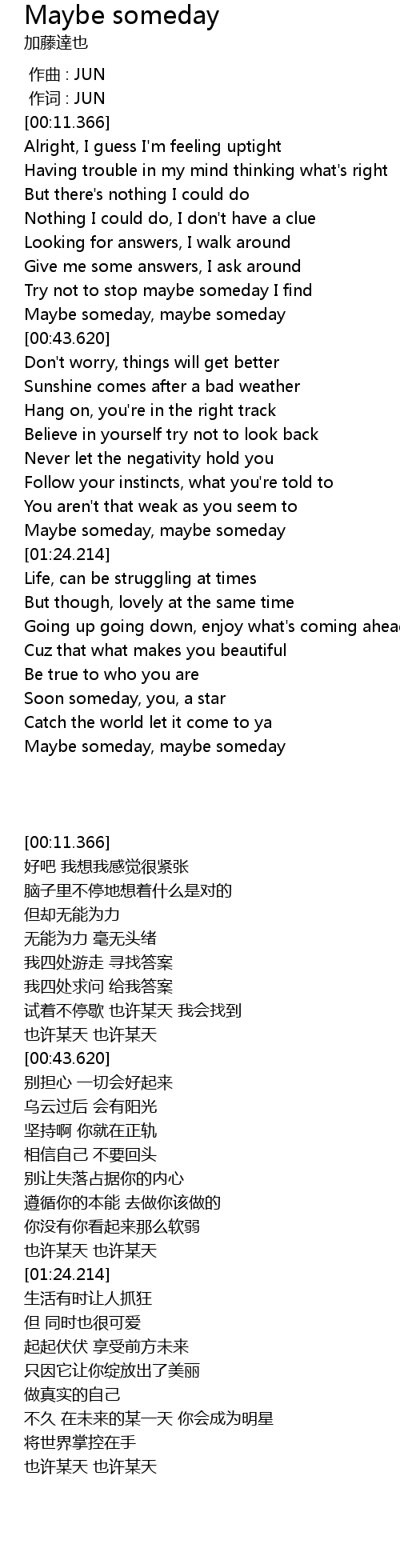 | [01:54.053] | 不久 在未来的某一天 你会成为明星 |