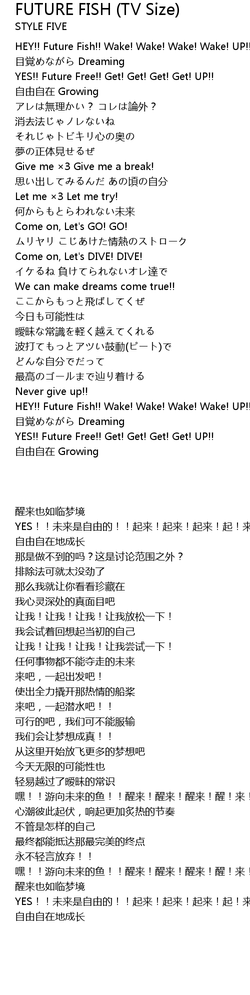 | [01:16.450] | 嘿!!游向未来的鱼!!醒来!醒来!醒来!醒!来!吧!! |