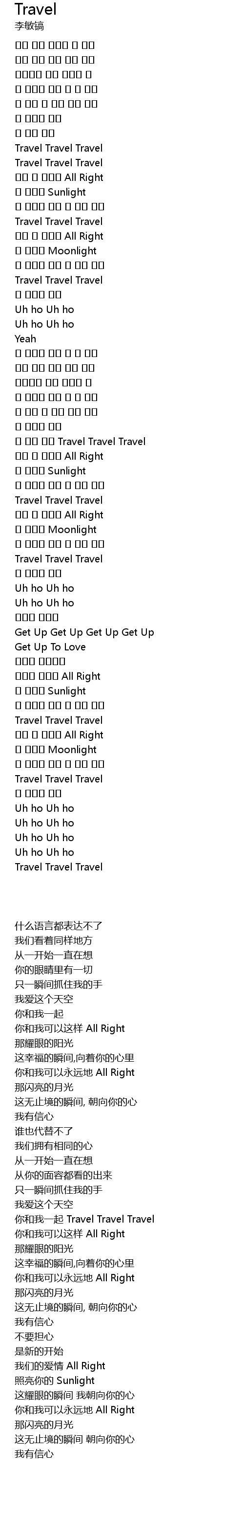 | [02:02.390] | 난 너와 함께 Travel Travel Travel |