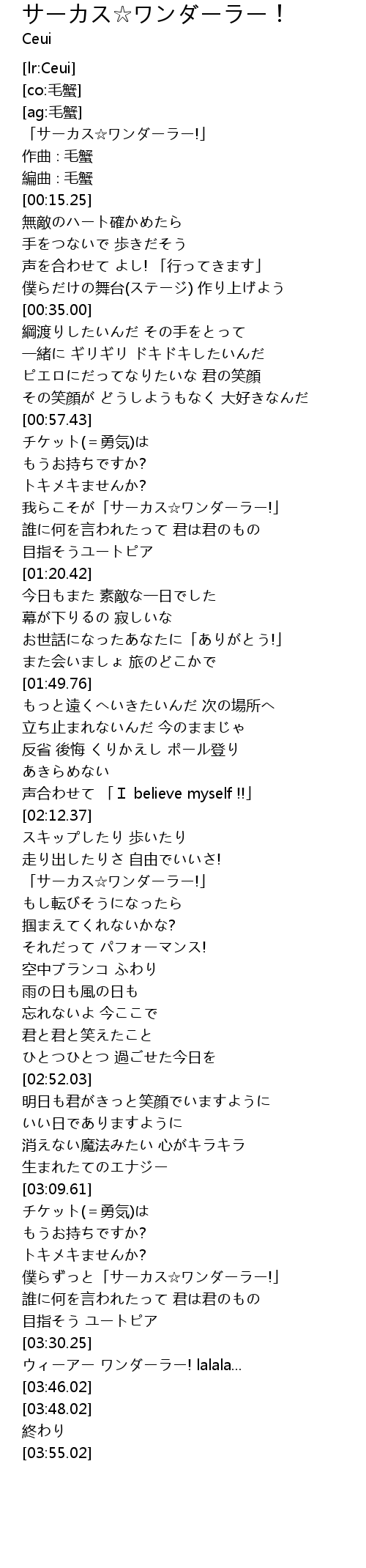 | [03:15.54] | 僕らずっと「サーカス☆ワンダーラー!」 |