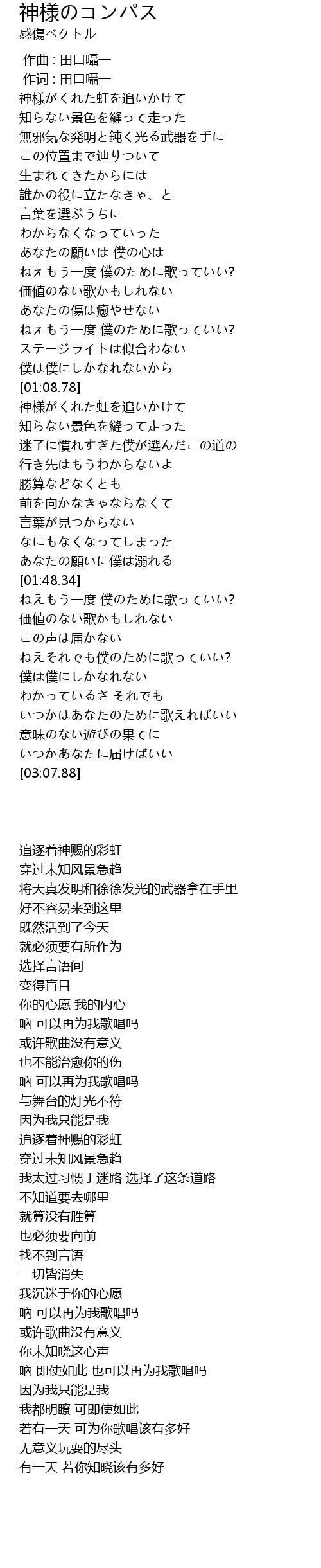 | [02:35.76] | ねえそれでも僕のために歌っていい? |