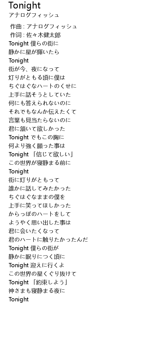 | [03:04.50] | Tonight 「約束しよう」 |