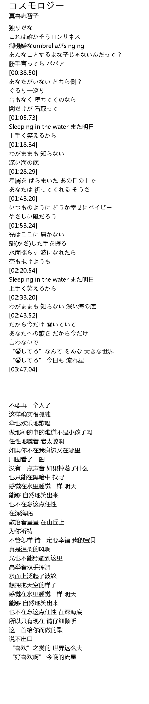 | [01:06.40] | Sleeping in the water また明日 |