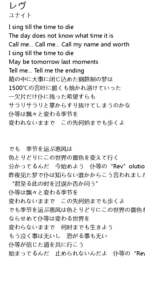 | 分かってるんだ 今始めよう 仆等の“Rev”olution | |