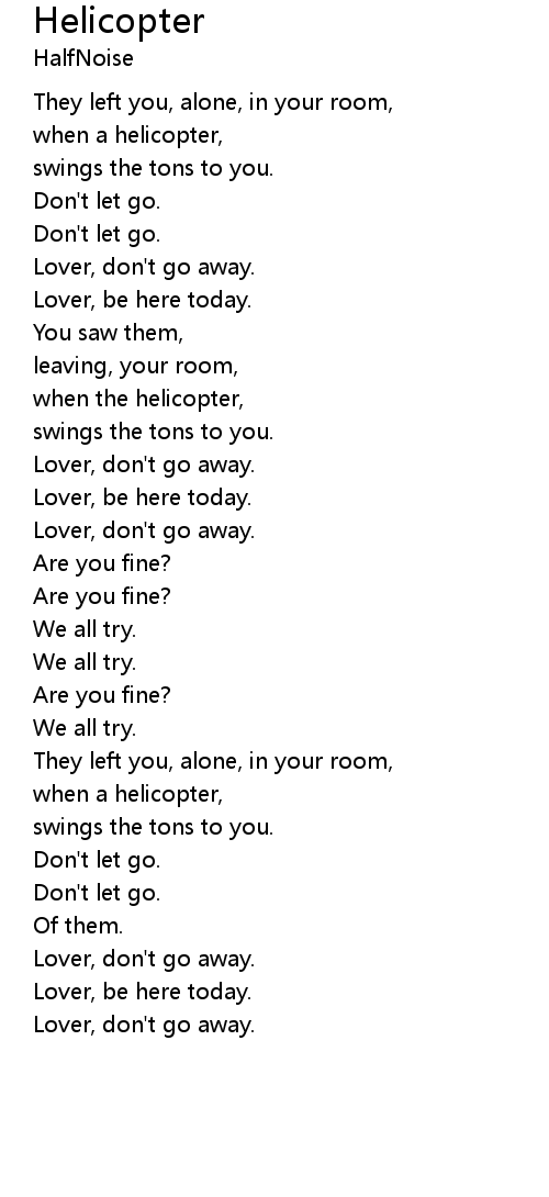 | [00:12.62] | when a helicopter, |