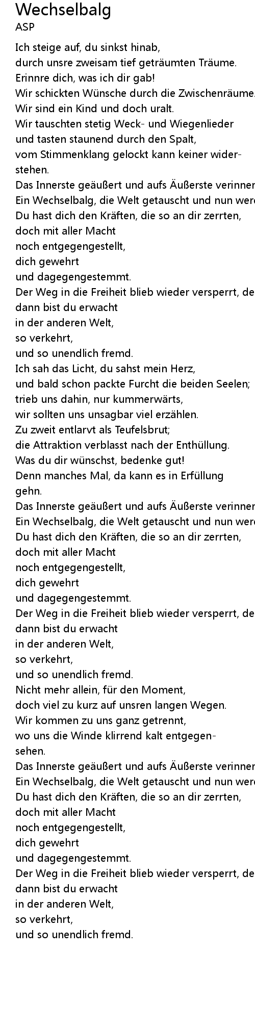 | Wir tauschten stetig Weck und Wiegenlieder | |
