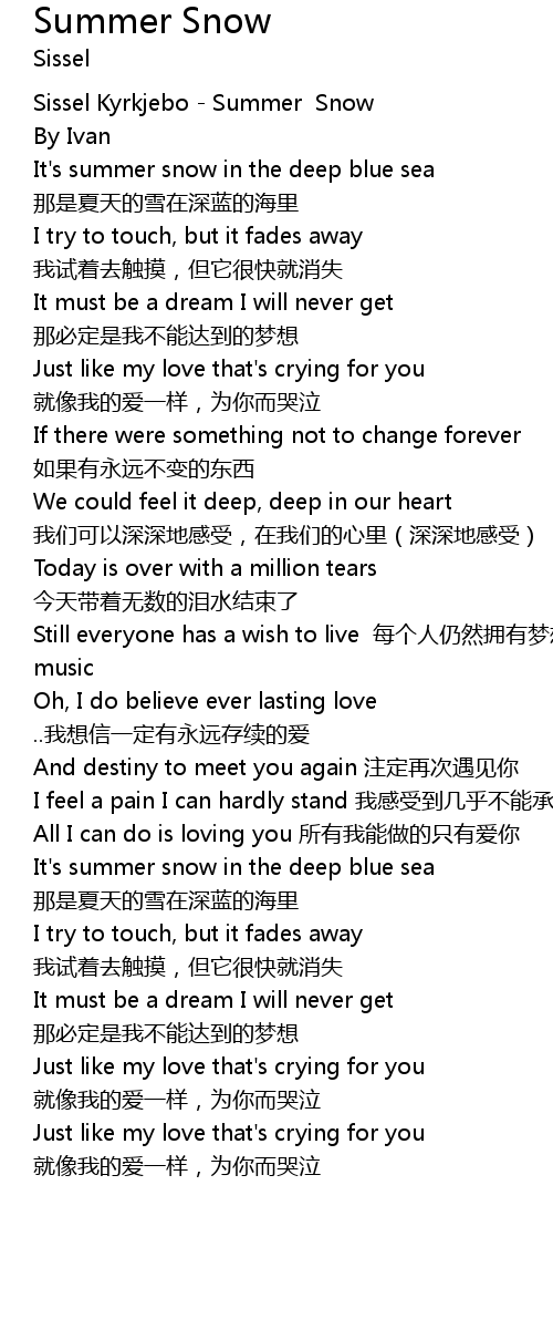 | [00:07.11] | Sissel Kyrkjebo Summer Snow |