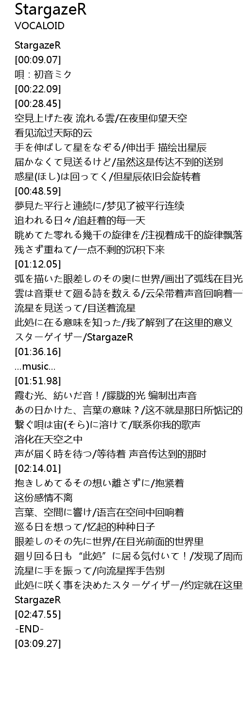 | [00:17.12] | 唄:初音ミク |