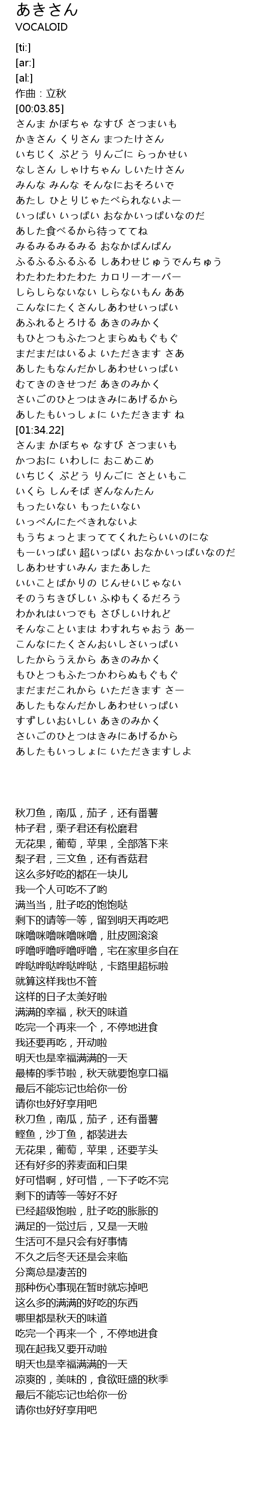 | [00:18.58] | 秋刀鱼,南瓜,茄子,还有番薯 |