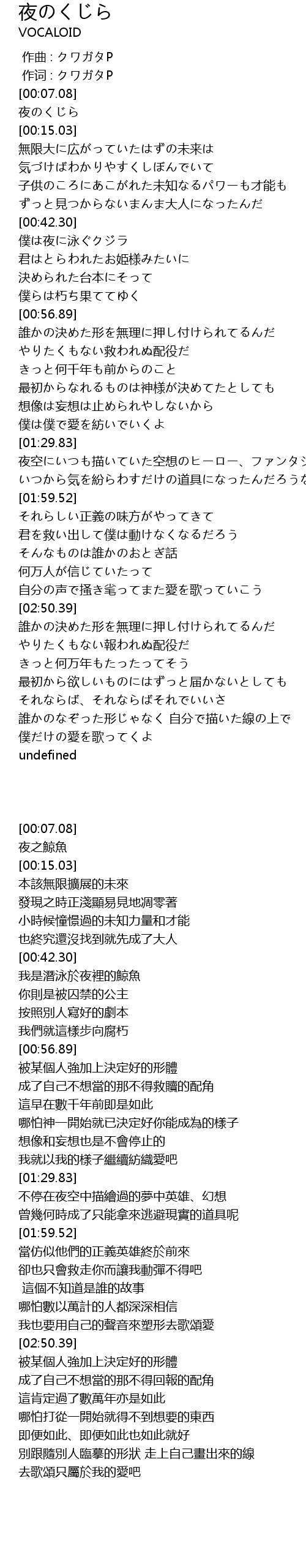 | [00:42.50] | 僕は夜に泳ぐクジラ |