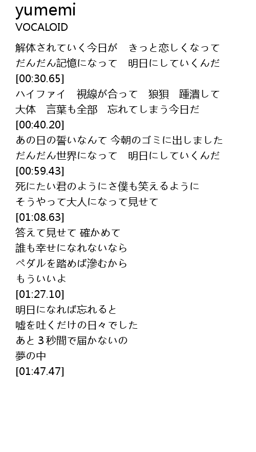 | [00:59.57] | 死にたい君のようにさ僕も笑えるように |