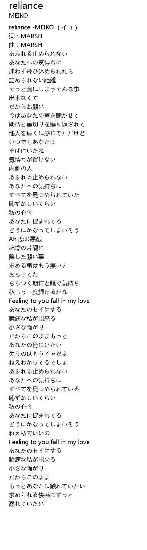 | [00:00.00] | reliance -MEIKO (イコ) |