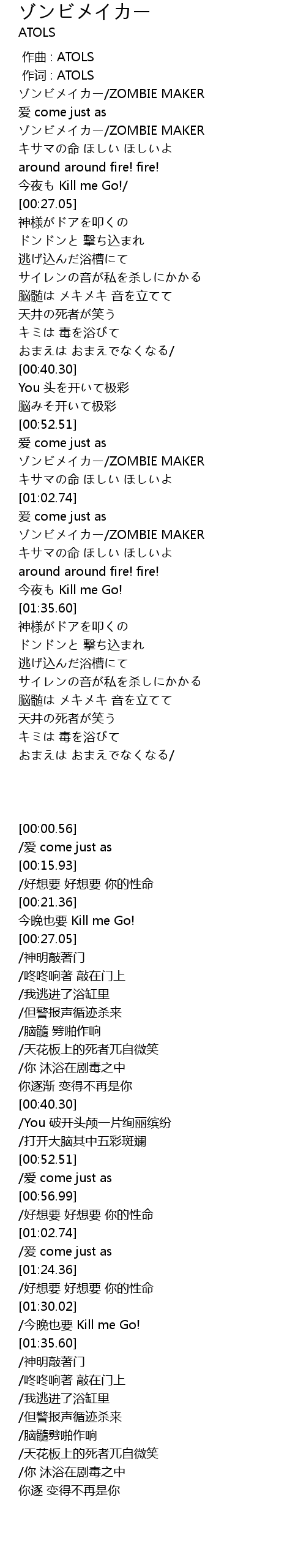 | [00:56.99] | ZOMBIE MAKER |