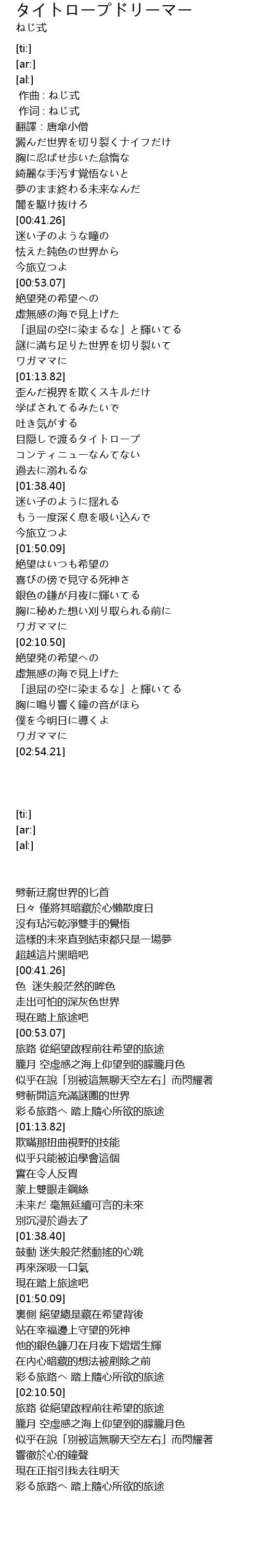 | [00:53.47] | 旅路 從絕望啟程前往希望的旅途 |