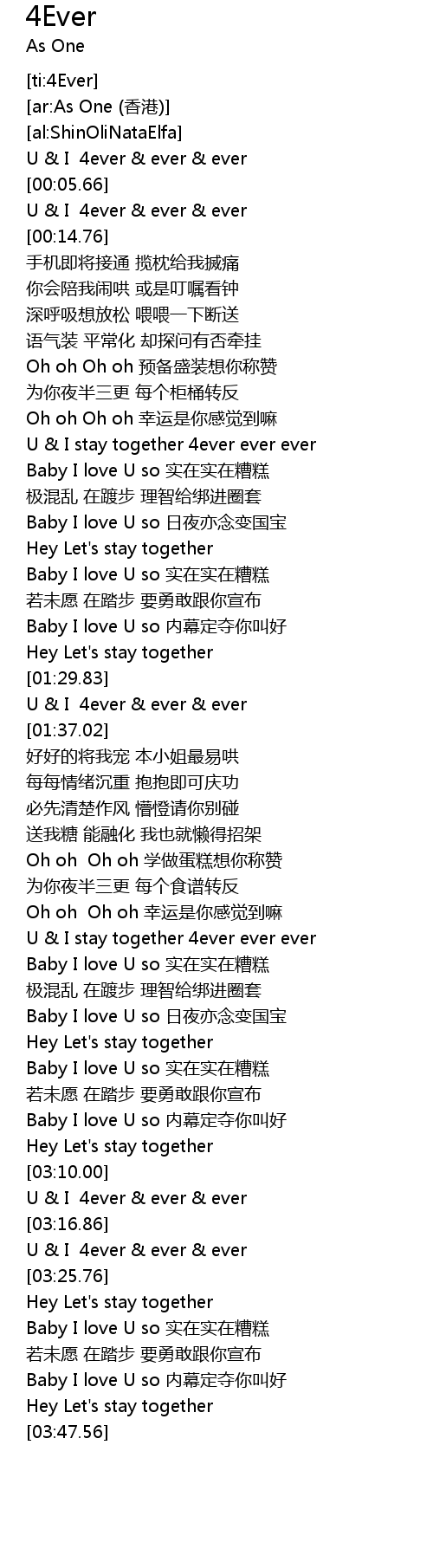| [00:49.71] | U & I stay together 4ever ever ever |