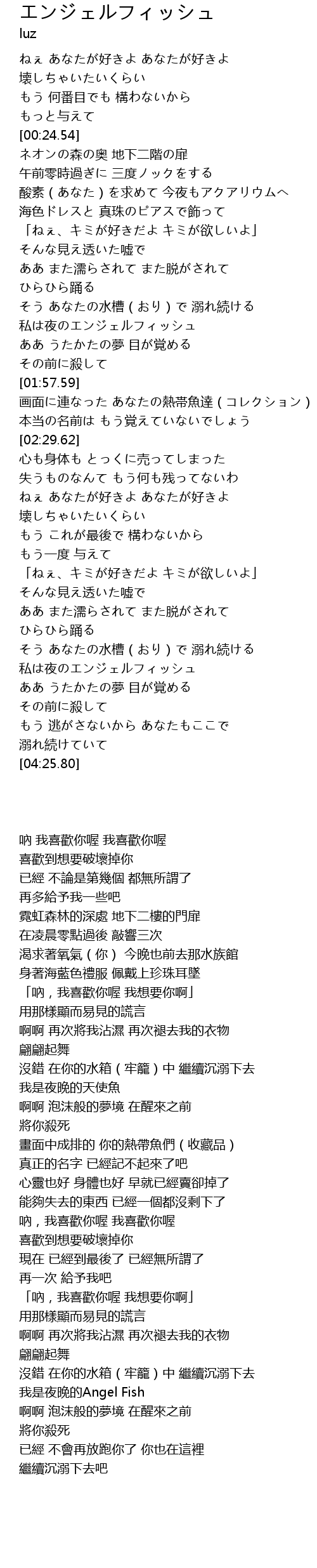 | [03:59.70] | 私は夜のエンジェルフィッシュ |