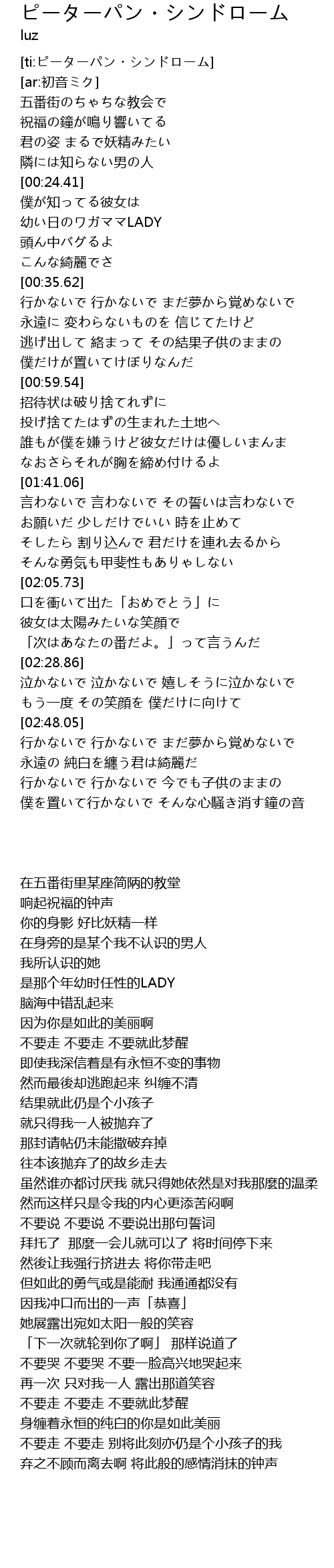 | [ti:ピーターパン・シンドローム] | |