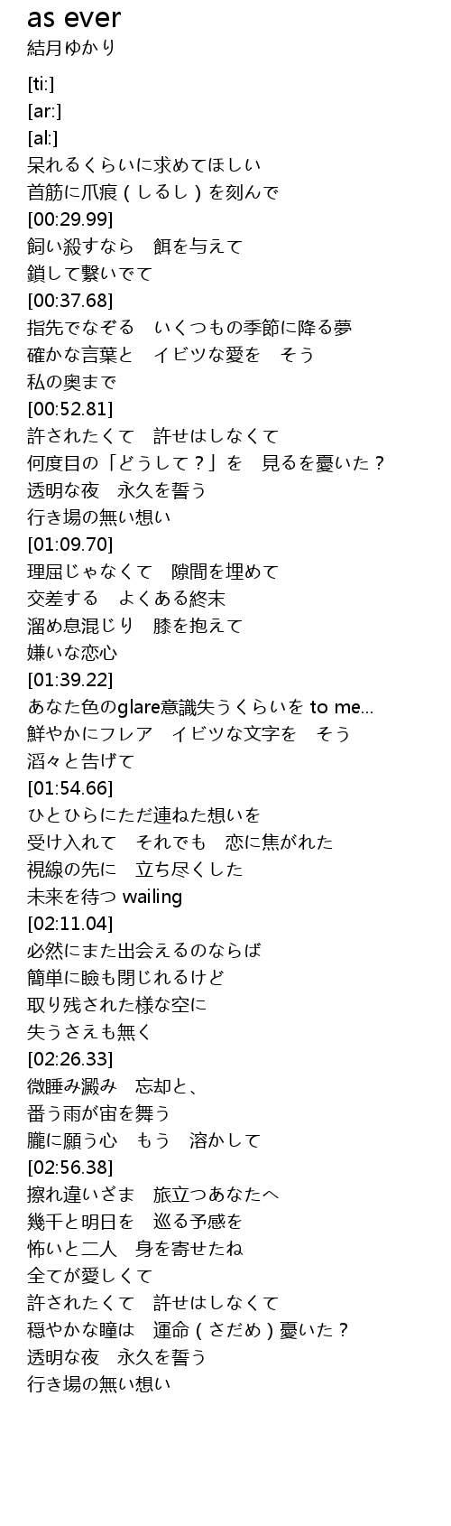 | [03:11.36] | 許されたくて 許せはしなくて |