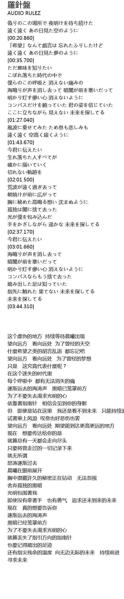 | [01:07.160] | 依靠著指南针 相信会见到你的身影 |