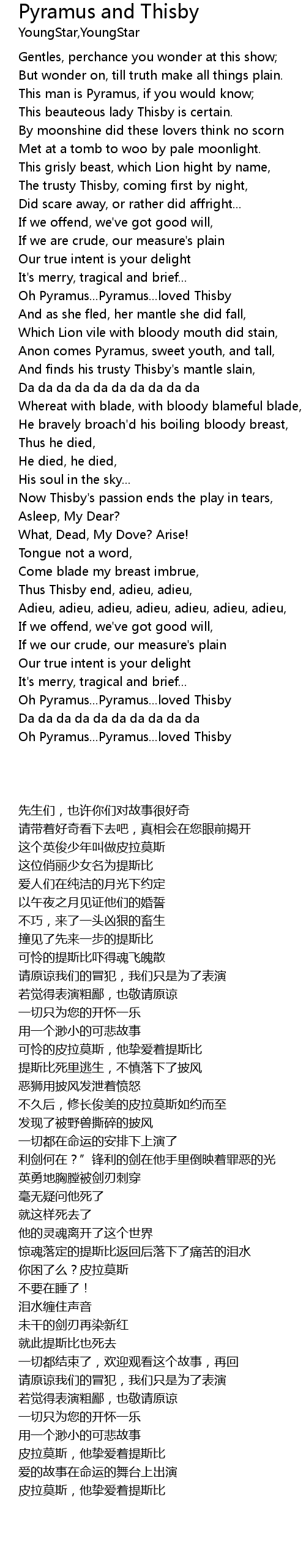 | [01:18] | 可怜的皮拉莫斯,他挚爱着提斯比 |