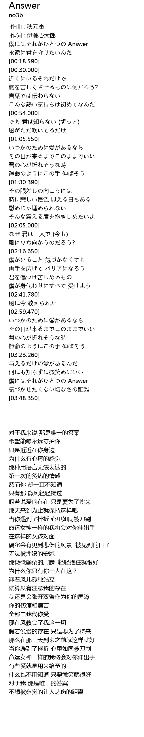 | [03:35.520] | 僕にはそれがひとつの Answer |