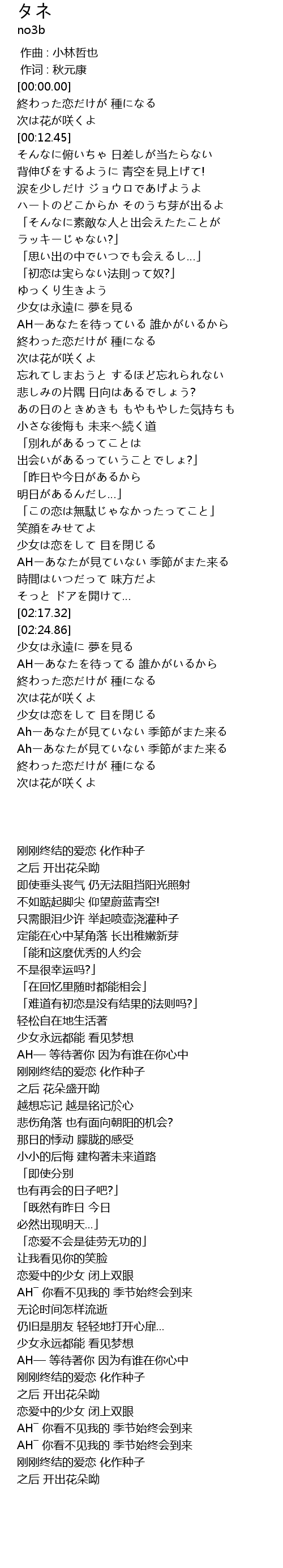 | [02:43.63] | 刚刚终结的爱恋 化作种子 |
