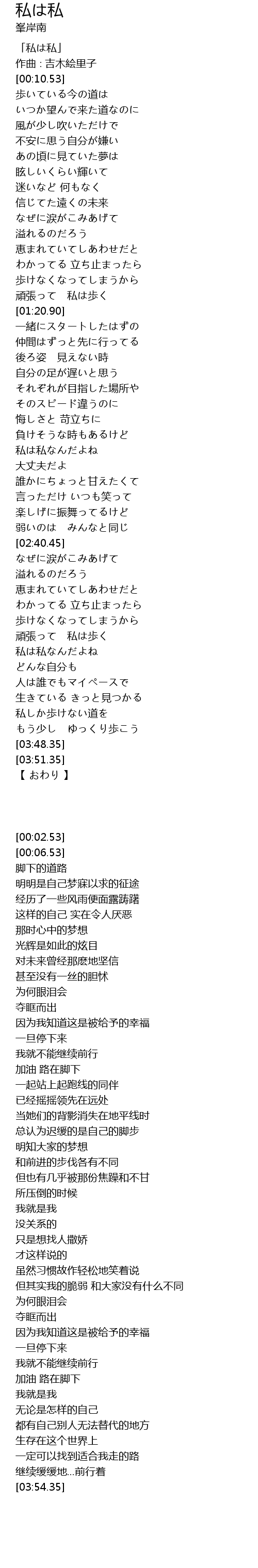 「私は私」 |