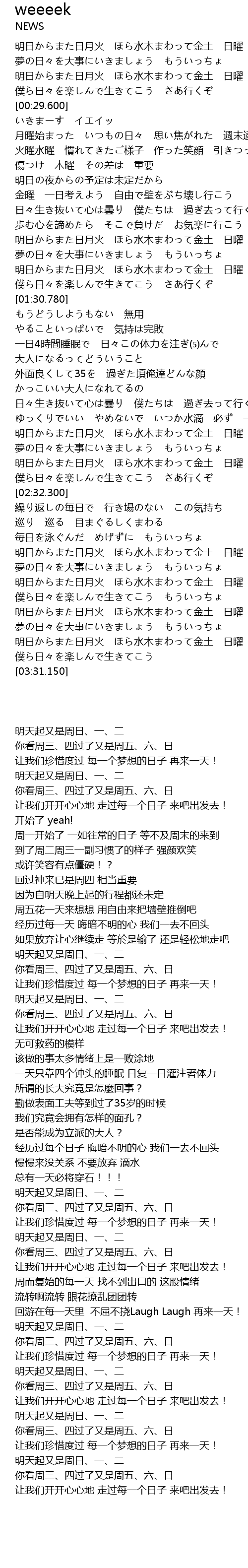 | [01:19.710] | 明日からまた日月火 ほら水木まわって金土 日曜 |