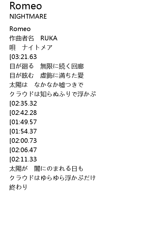 | [00:03.46] | Romeo |