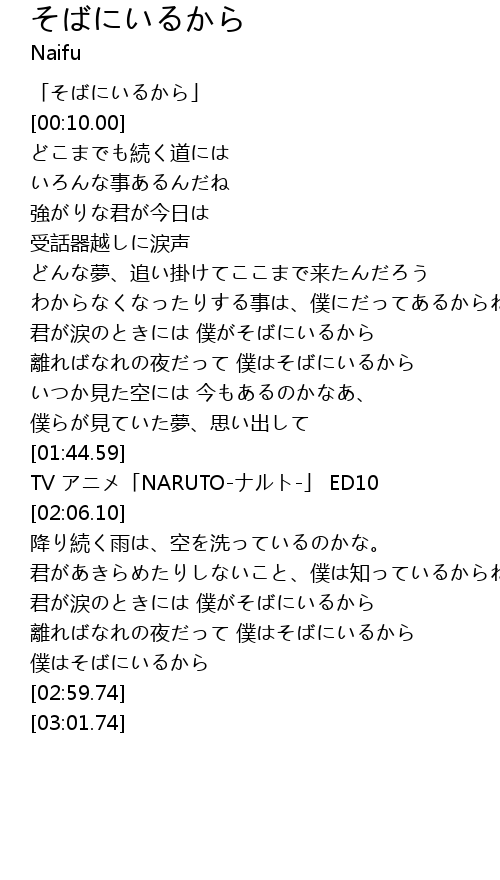 | [01:47.59] | TV アニメ「NARUTO-ナルト-」 ED10 |